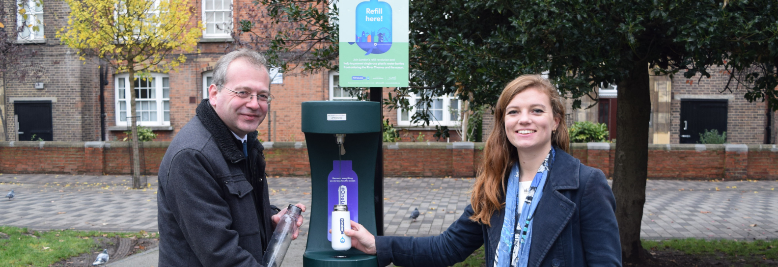 The people of Camberwell are being helped to cut down on single-use plastic water bottles, with the addition of a new, free, public drinking water fountain on Camberwell Green. Cllr Richard Livingstone, Cabinet Member for environment, transport management and air quality joined Alice Chamberlain, Project Assistant from the #OneLess campaign, to top up their water bottles and launch the new fountain.
